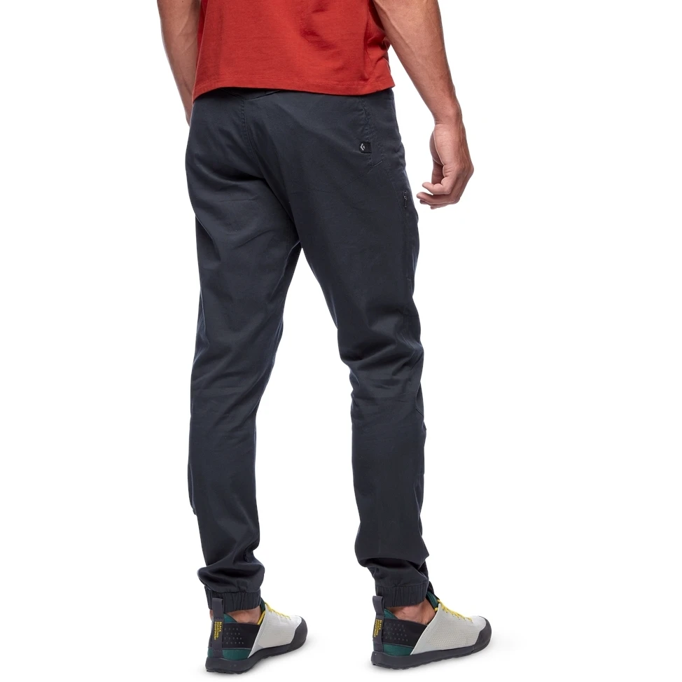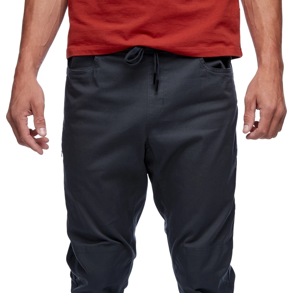 De zachte, elastische tailleband kan gemakkelijk onder een klimgordel worden gedragen. De verstevigde knieën bieden extra duurzaamheid bij intensief gebruik, en ook de elastische manchetten en zakken dragen bij aan de functionaliteit.