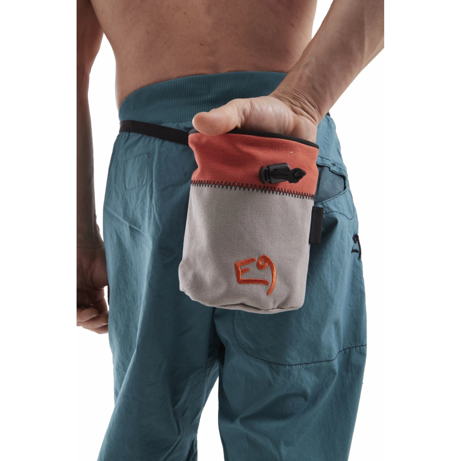 De AGLIO C onderscheidt zich van andere krijttassen door het katoenen materiaal. Voor een comfortabel gebruik is hij aan de binnenkant gevoerd met fleece. Het heeft een verstevigde, grote opening en een koordsluiting. Het E9-logo is op de voorkant geborduurd. Er is een elastische borstelhouder aan de zijkant. Een krijttasriem is inbegrepen.