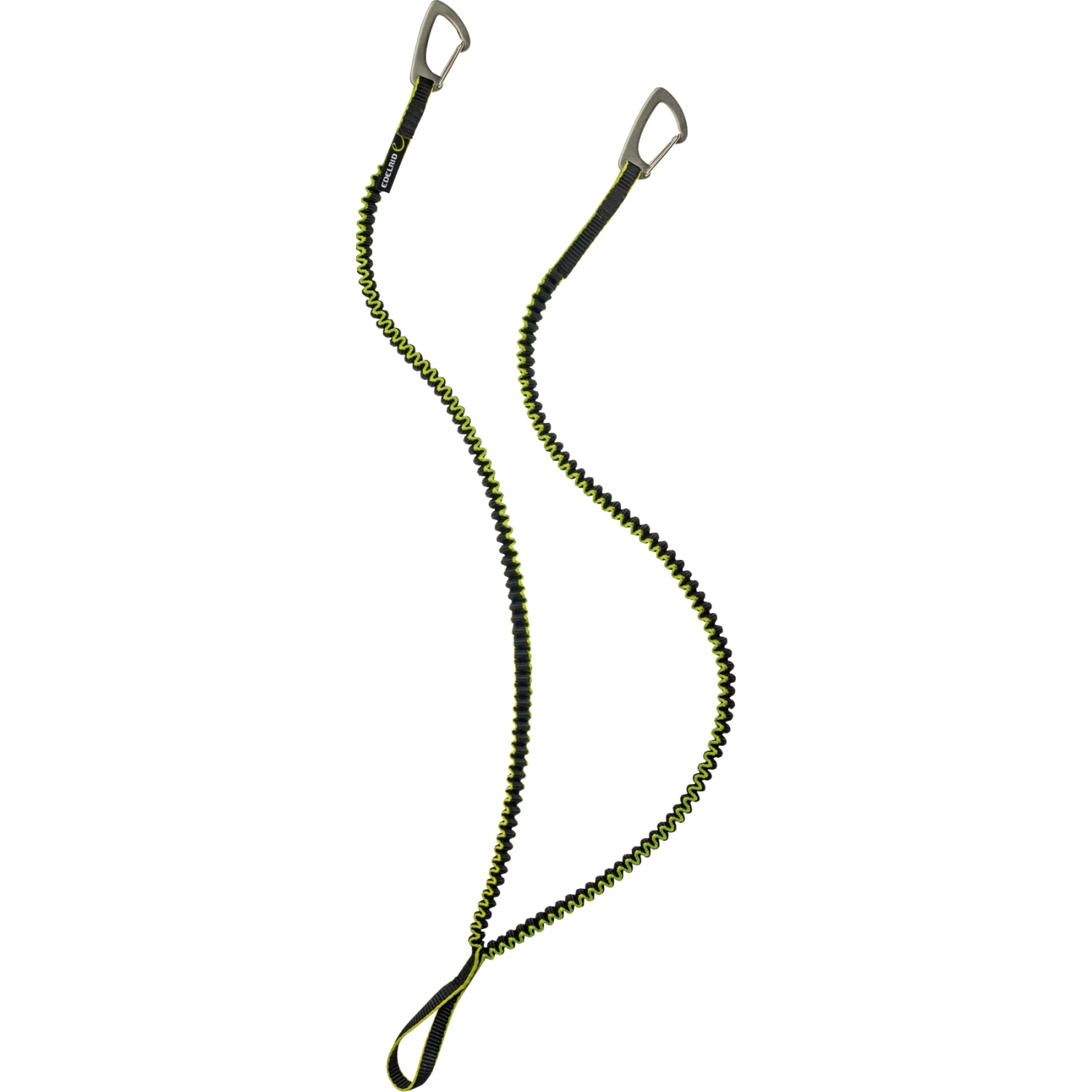 Elastische Y-slinger voor het vastzetten van ijsgereedschap bij het klimmen zonder handlussen.
