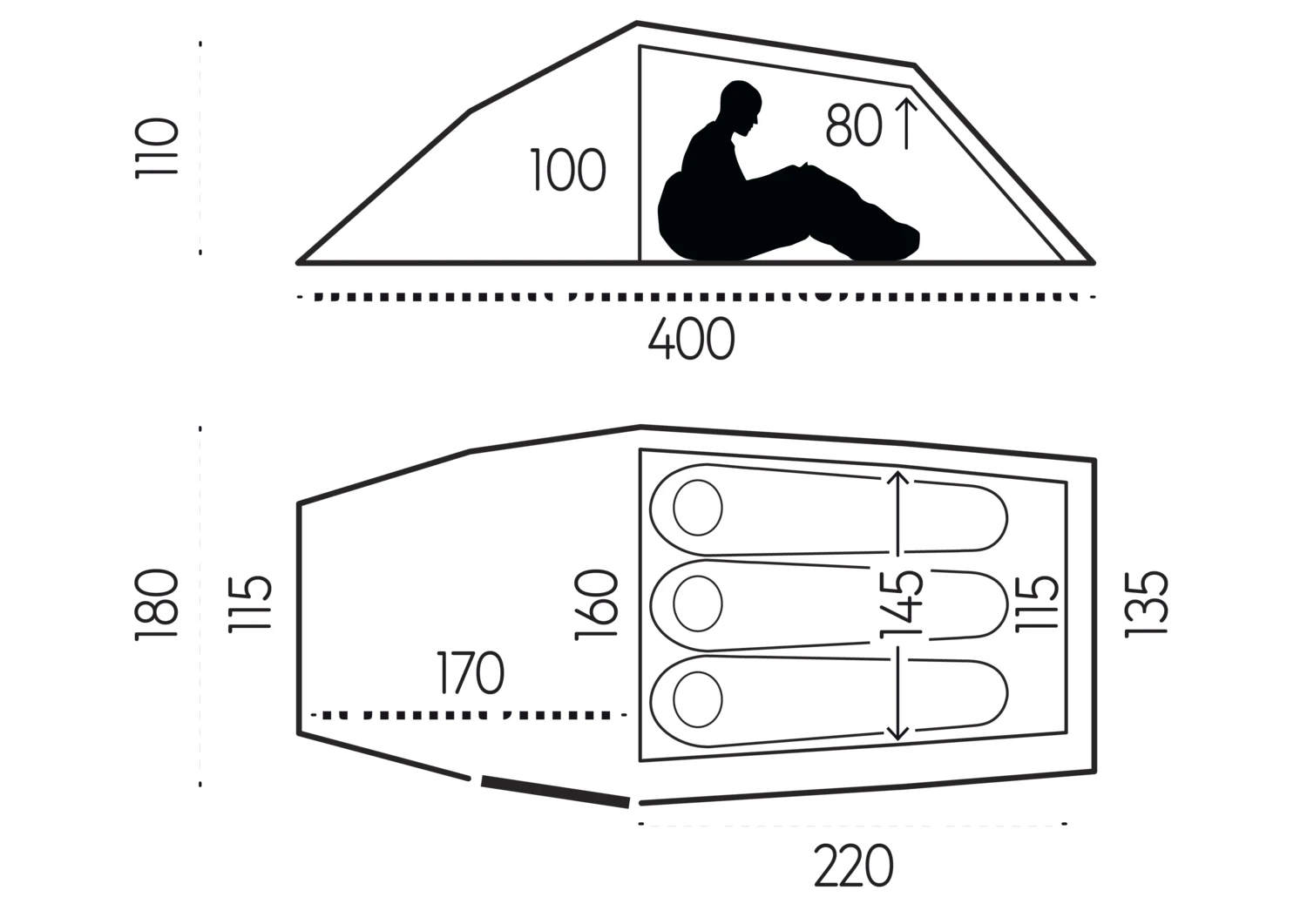 Lichtgewicht, robuuste tunneltent met ruime vestibule. Gemakkelijk op te zetten. Doordachte functies, zoals een buitentent die aan beide zijden oprolt.
