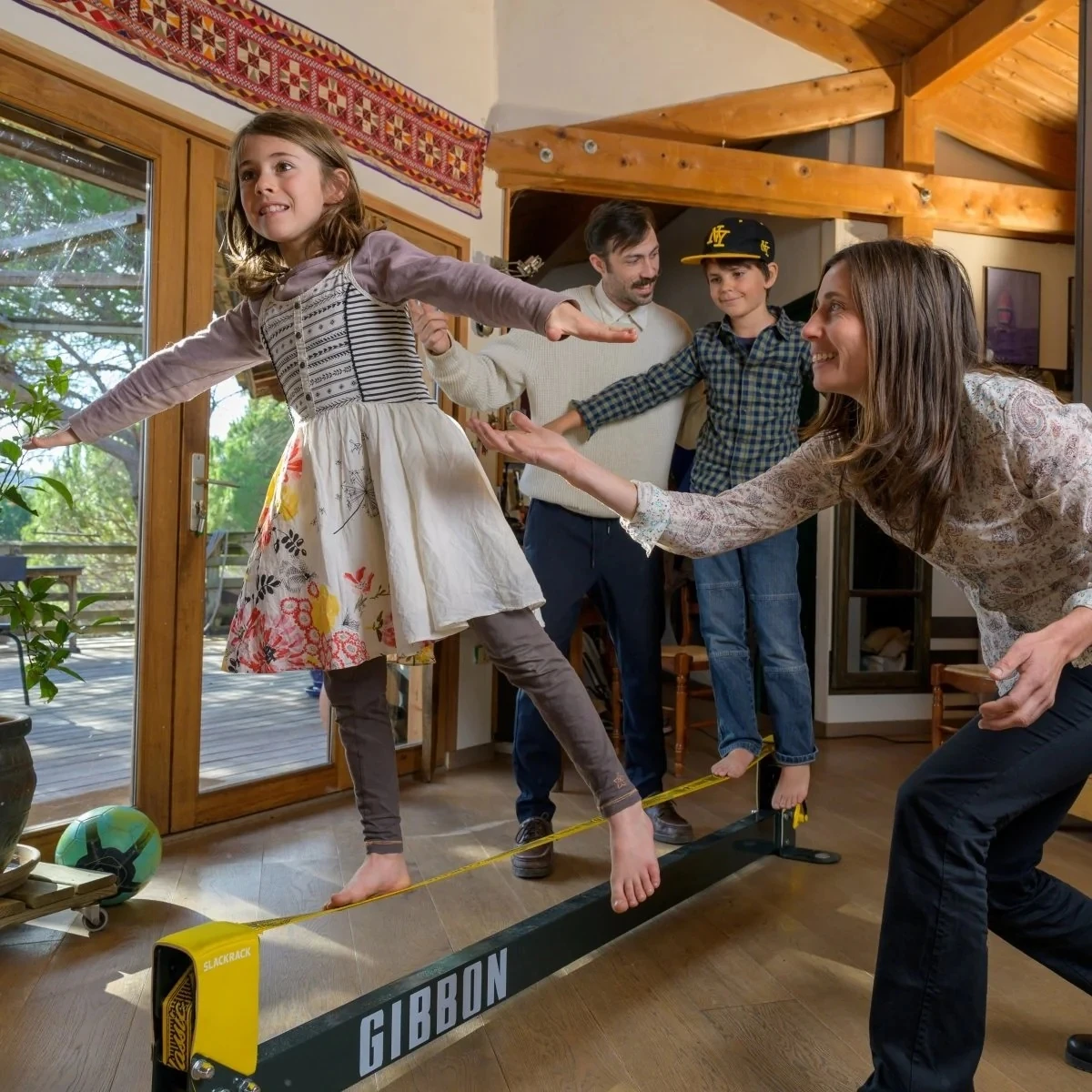 Slacklinen zelfs als het buiten regent? Zonder elke keer de slackline te moeten opzetten? In de winter? Voor het werk?