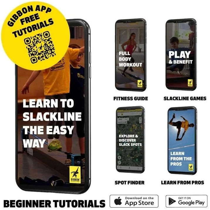 - Eenvoudige montage in slechts 15min en flexibele opbouwlengte: 2m of 3m, rubberen voetjes tegen uitglijden en krassen, compatibel met alle GIBBON Slacklines.