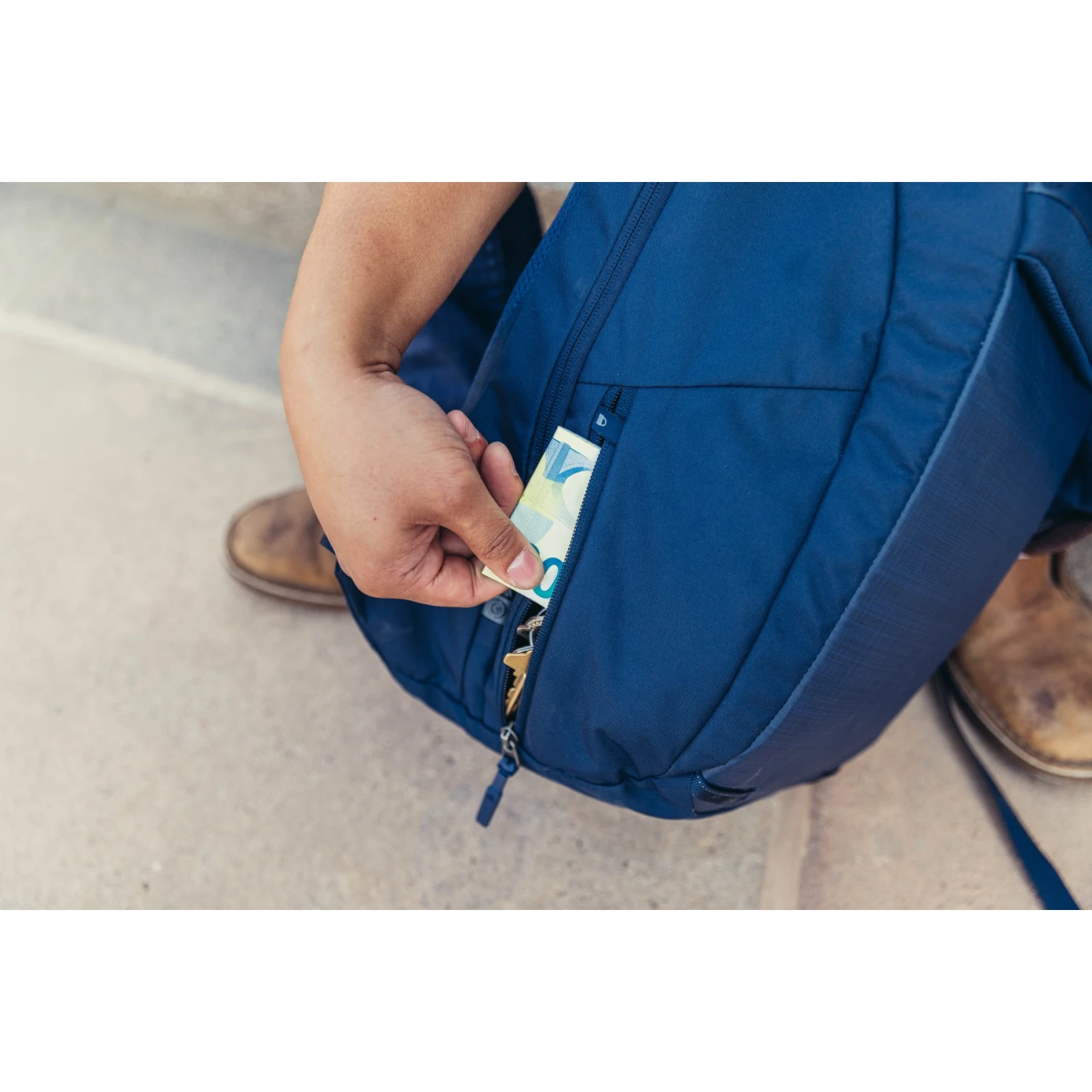 - Rugzak body: 100% gerecycled 450d polyester, 75% gerecycled 210d nylon met Pvc-vrije coating