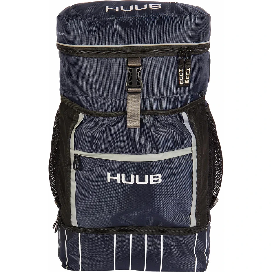 De populaire Transition Bag van triatleten heeft een nieuwe look gekregen. De enorme rugzak met een inhoud van 40 liter kan al je triatlonuitrusting bevatten – met waterdichte opbergruimte voor HUUB wetsuits, opbergvakken voor schoenen en helmen en diverse vakken voor alle andere spullen.