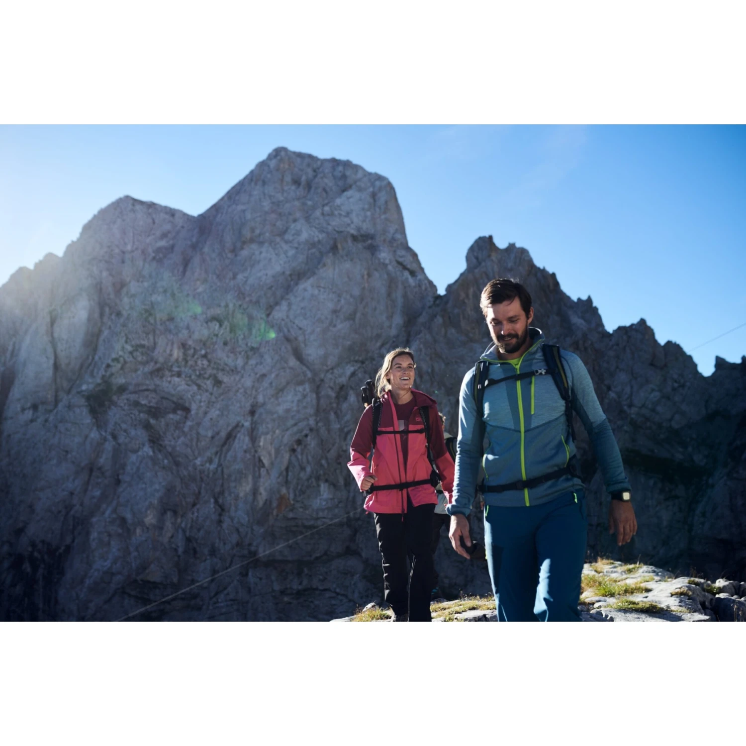 Je kunt je drinkfles in de uitklapbare flessenhouder op de heupgordel zetten, zodat je hem snel bij de hand hebt. Het aparte voorvak biedt opbergruimte voor kleine spullen. Verdere opbergmogelijkheden zijn de elastische gaaszakken aan de voor- en zijkanten en de bevestigingslussen voor uw trekkingstokken. Het is ook uitgerust met een voorbereiding voor een hydratatiesysteem.