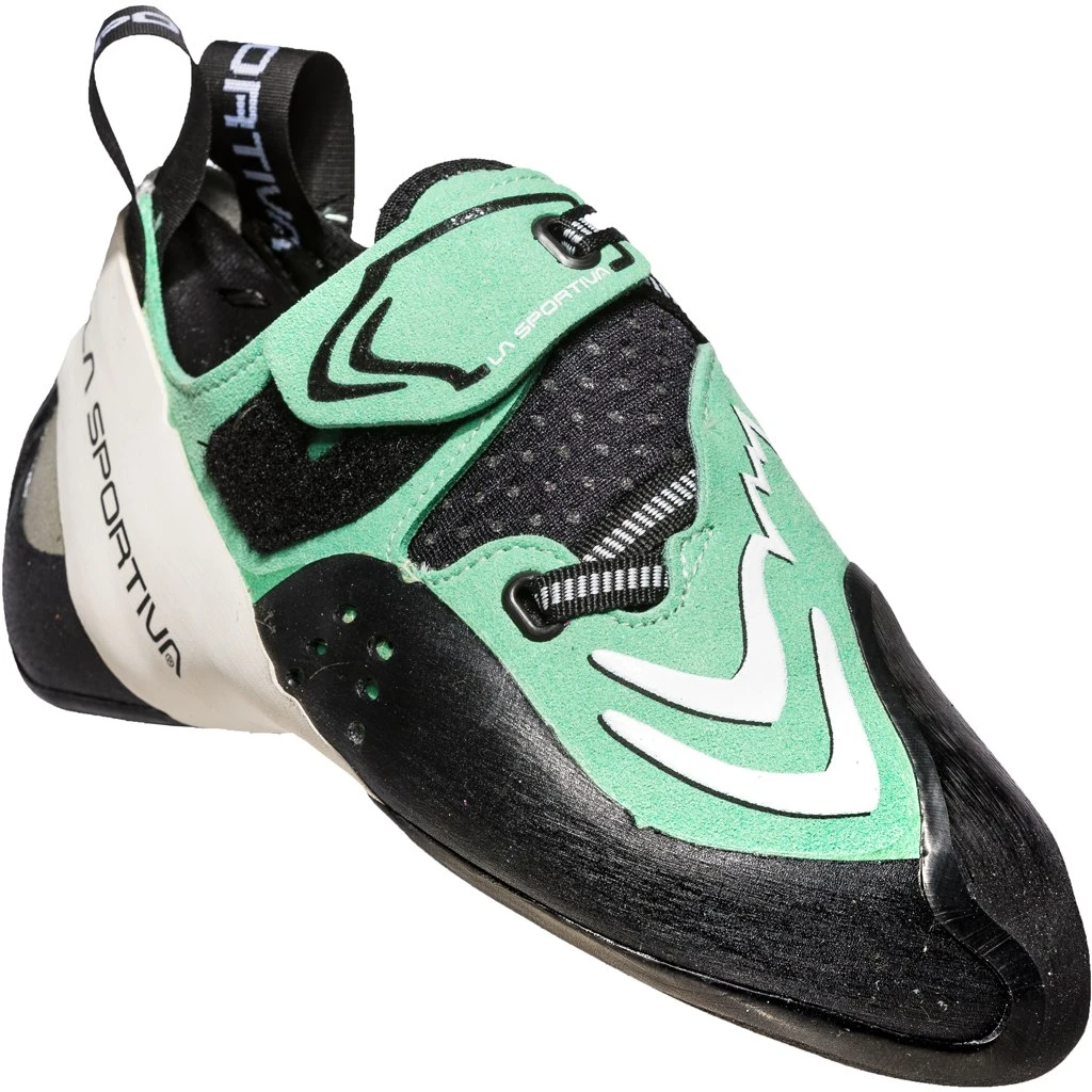 Klimschoen met No-Edge constructie: nieuwe revolutionaire constructiefilosofie gebaseerd op de eliminatie van de klassieke “randen” van de zool, met behulp van een dunnere en meer homogene rubberlaag die de gevoeligheid verbetert en de voet een gelijkmatige druk laat uitoefenen op de binnenkant van de schoen.