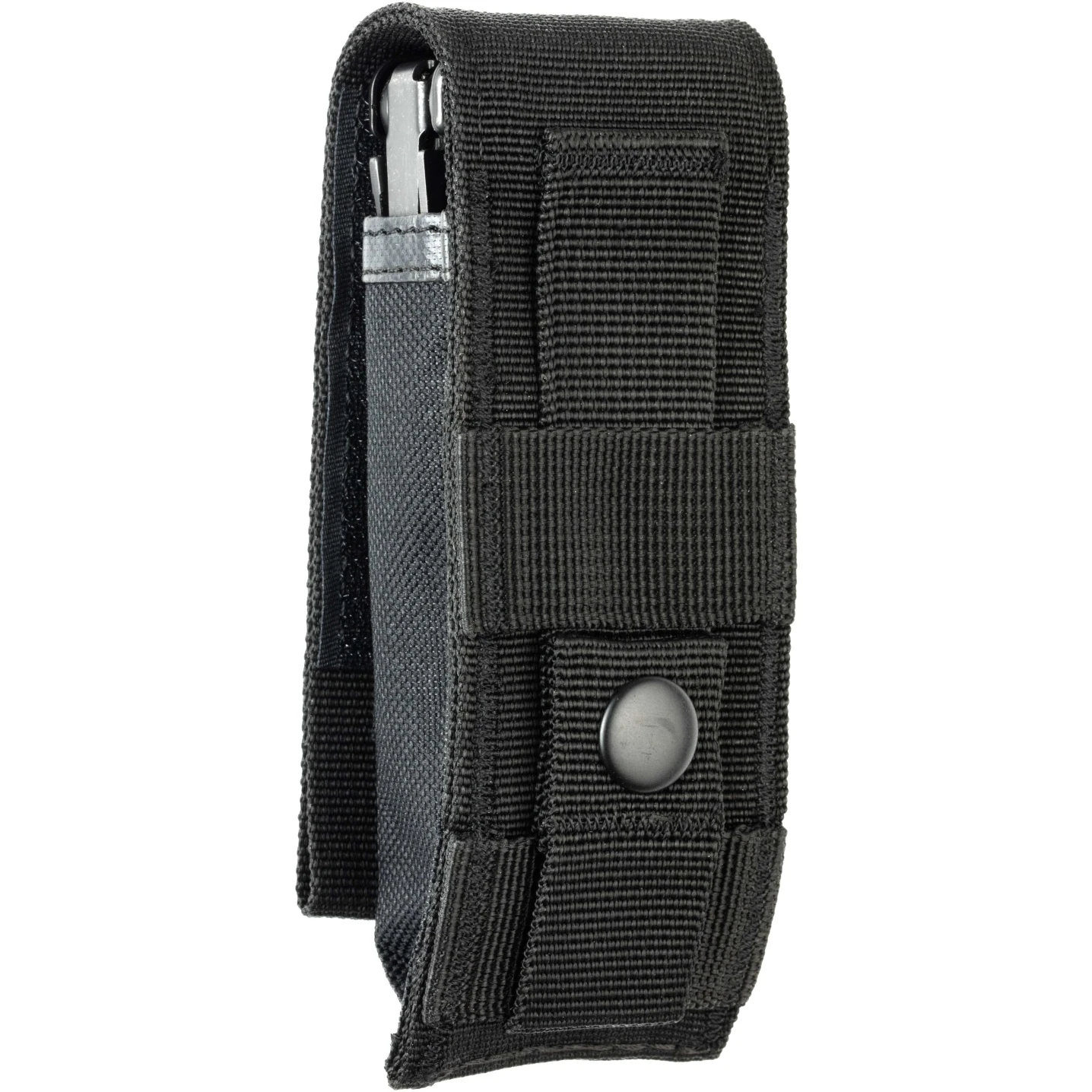 De MOLLE-schede is gemaakt van duurzaam ballistisch nylon en heeft een klittenband- en kliksluiting voor bevestiging aan de achterkant. MOLLE staat voor Modular Lightweight Load Carrying Equipment en wordt gebruikt om uw multitool te bevestigen aan rugzakken, dragende vesten en andere accessoires, zodat u uw Leatherman tool altijd bij de hand heeft als u onderweg bent.