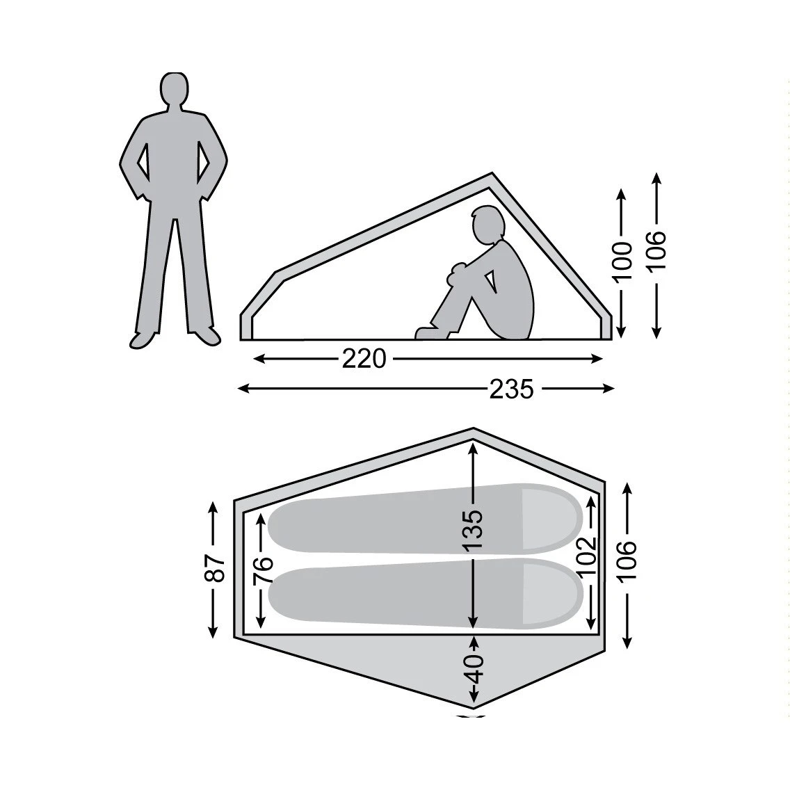 Technische en extreem lichte tweelaagse 2-persoonstent.