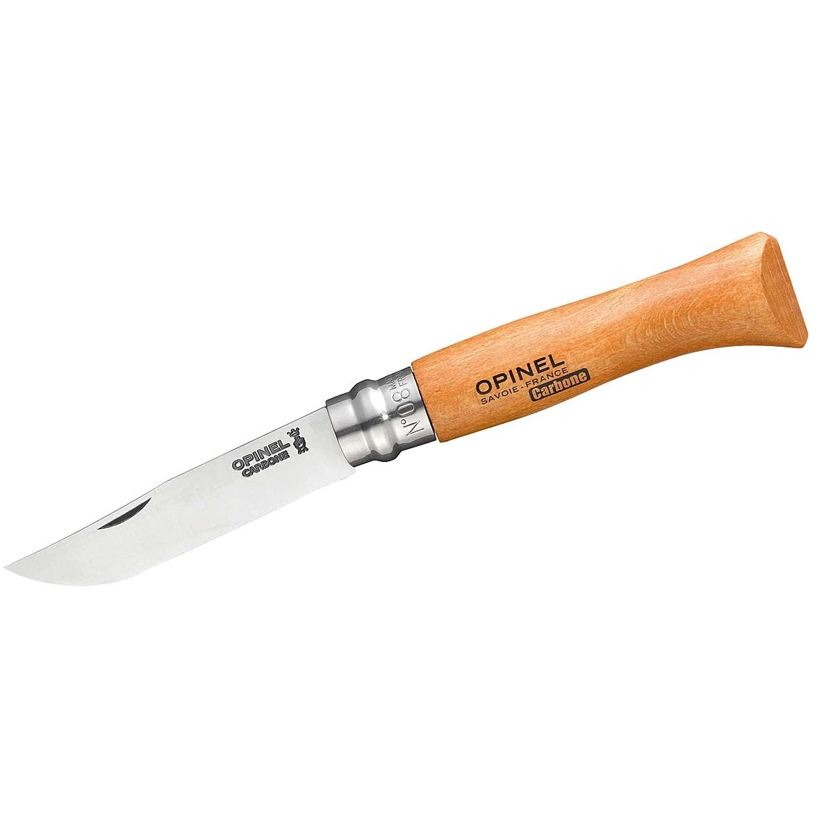 Lemmet van het Opinel zakmes No 08 gemaakt van XC90 koolstofstaal.