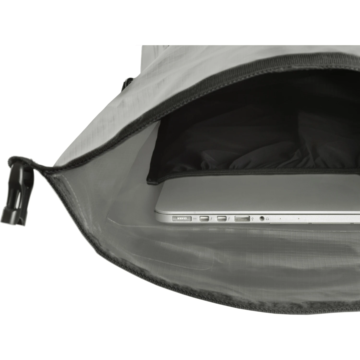 De Orbit is gemaakt van sterke, dubbel gecoate, waterdichte 420-denier ripstop stof. In combinatie met de waterdichte rolsluiting blijven uw spullen altijd veilig. Het 13″ laptopvak is schokbestendig en beschermt uw computer tegen schokken aan alle kanten. De Orbit heeft een interne waterdichte zak met rits en een externe zak met rits om uw waardevolle spullen altijd beschermd te houden.