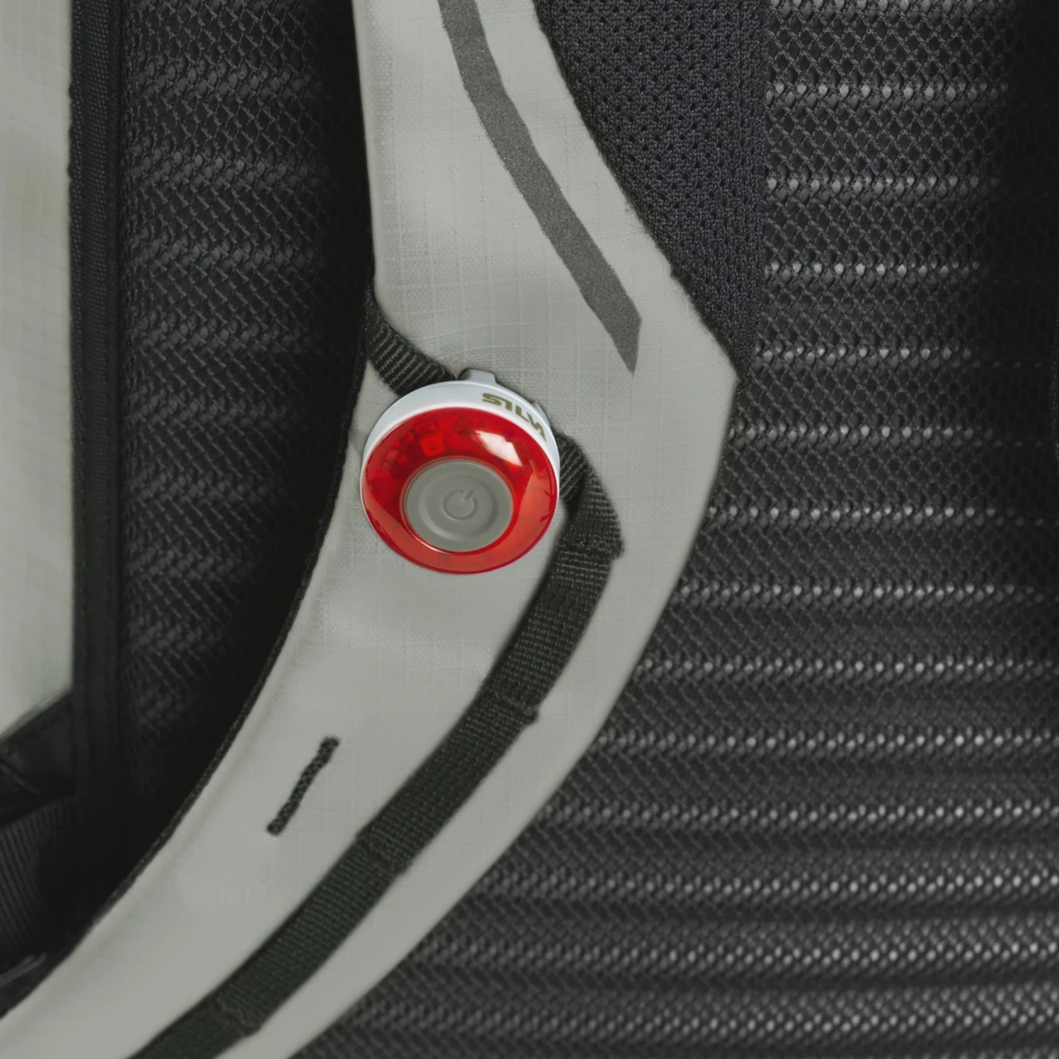 De Orbit heeft een strak grijs ontwerp met 360° zichtbaarheid vanuit alle hoeken dankzij reflecterende details. U kunt ook lichten bevestigen aan de bevestigingspunten aan de voor- of achterkant.