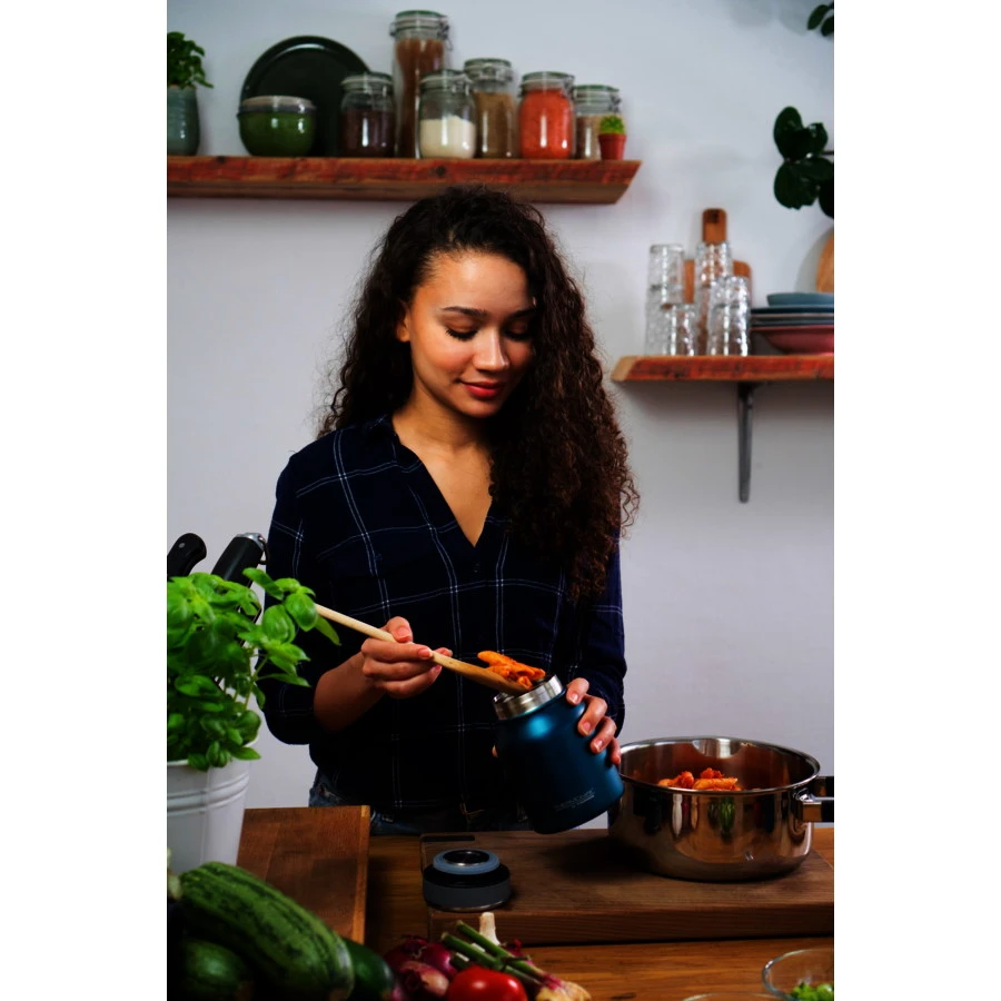 Kantinemaaltijden of fastfood zijn voor bewuste stadsbewoners al lang niet meer aan de orde: we hebben ruimte nodig voor de TC Food Jar. De roestvrijstalen mok met easy-grip schroefdop nodigt uit tot grijpen en wegwezen. Grote opening, groot genot met urenlang warme stoofpotten en soepen.